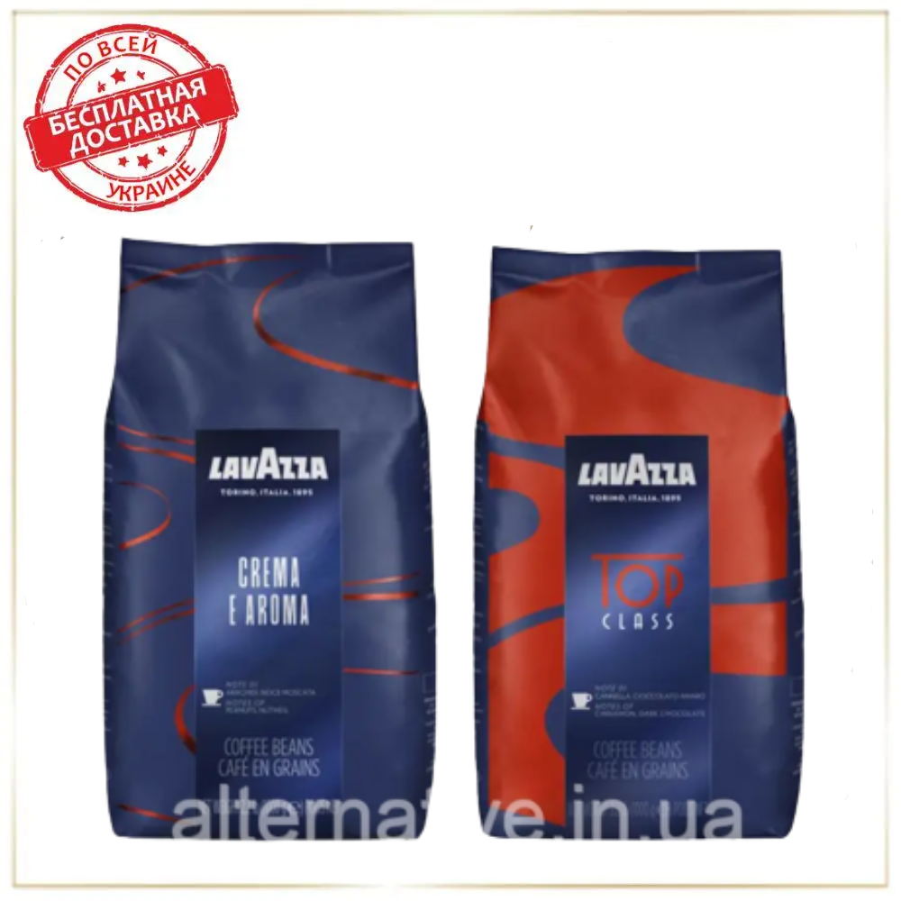 Кава в зернах набір Lavazza (2х): Crema e Aroma (синя) + Top Class зернова кава Лаваца